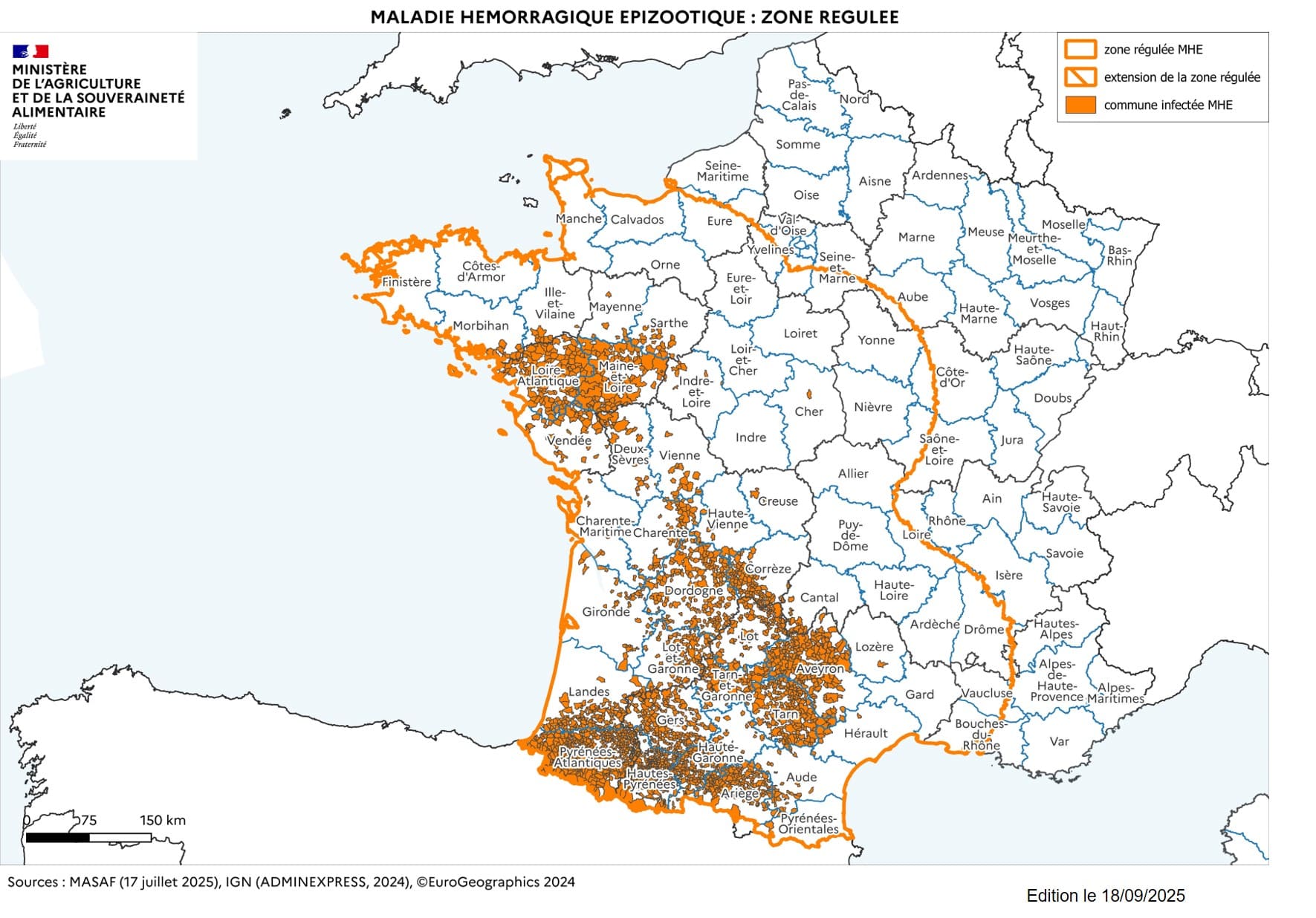 La liste des communes pourrait évoluer à la marge en début de semaine, la liste/carte des communes sur le site de la DRAAF fait foi.