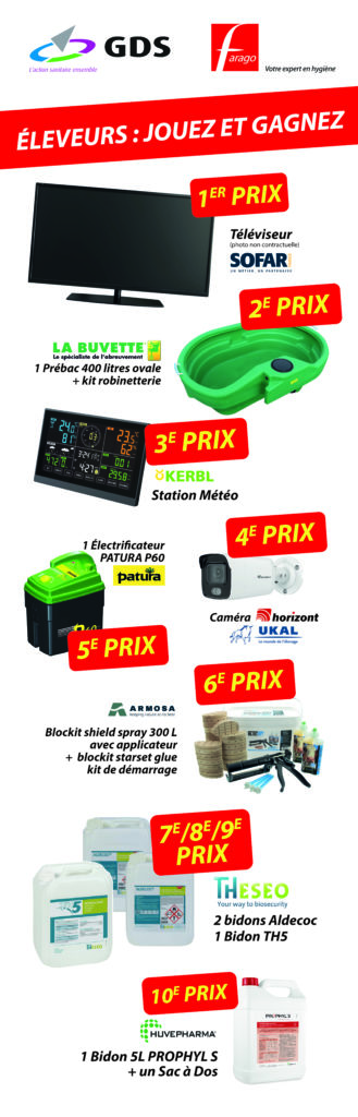 Nous vous invitons à venir nous retrouver sur notre stand. Il se veut lieu d’écoute, de recueil des attentes, d’apport d’informations, de convivialité… Aux côtés des salariés des différentes structures départementales, vous pourrez échanger avec les administrateurs sur les actualités sanitaires et vos préoccupations. Un quiz numérique vous sera proposé et vous pourrez tester vos connaissances sur la thématique du « One Health – Une seule santé ». Les gagnants du jeu concours seront tirés au sort parmi les bonnes réponses.