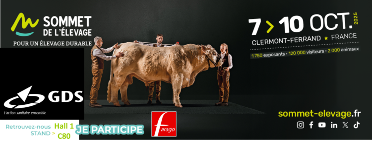 Votre GDS vous accompagne dans la connaissance des risques sanitaires auxquels votre élevage est exposé, des mesures préconisées et sécurise la filière par les garanties apportées. Pour la mise en œuvre pratique des mesures de biosécurité, vous pouvez vous appuyer sur votre filiale Farago. Pour plus de renseignements, venez nous retrouver dans un cadre convivial et échanger sur notre stand au Sommet de l’élevage du 7 au 10 octobre 2025 (Hall 1, stand C80).